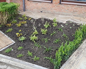 Een voortuin van ontwerp tot aanleg in beplanting.